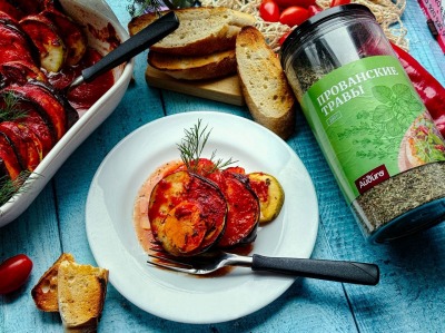 1. Овощи нарежьте кружочками, присолите, посыпьте травами.