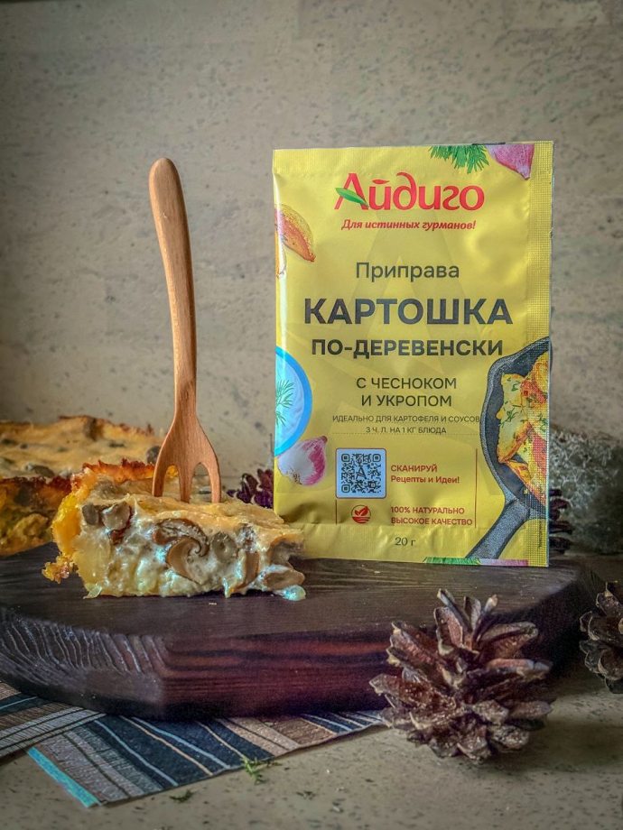Ключевым ингредиентом этого блюда выступает приправа «Картофель по-деревенски» благодаря своему натуральному составу и гармоничному сочетанию специй. Натуральный чеснок и лук, паприка и черный перец, укроп и кориандр, куркума, тимьян и майоран — всё это создаёт уникальный аромат, который идеально подчеркнёт вкус ваших блюд.