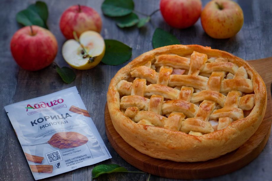 6. Выложите начинку на тесто и закройте нарезанными полосками теста в виде плетения.