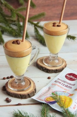 1. Приготовьте коктейль: смешайте сухую смесь с молоком и взбейте миксером.