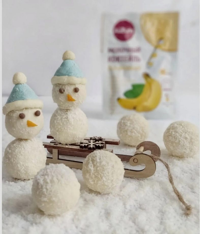 Кулинарная фантазия: можно сделать трюфели двух размеров, поставить маленький на большой, вырезать из апельсиновой цедры носик-морковку, а из кондитерской посыпки сделать глазки — получатся очаровательные снеговики!