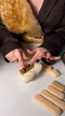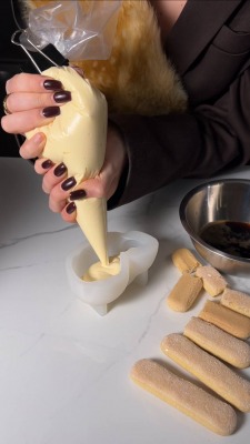8. В форму выложите часть мусса, затем савоярди, пропитанные эспрессо, и повторяйте слои по желанию.