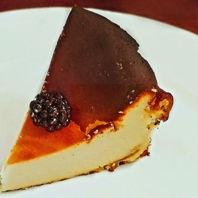 Настоящий баскский чизкейк должен слегка дрожать в центре сразу после выпечки — именно это гарантирует кремовую, почти текучую сердцевину после охлаждения.