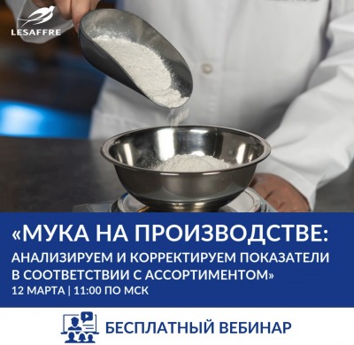 Приглашаем на бесплатный вебинар Lesaffre: «Мука на производстве: анализируем и корректируем показатели в соответствии с ассортиментом».