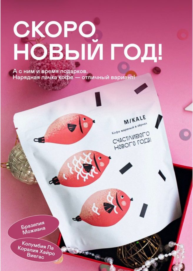 Лимитированная коллекция от обжарщика кофе из Брянска Mikale уже доступна к заказу. Не только красивая пачка, но и интересные сорта. - Новогодняя Рыбка / Бразилия Можиана