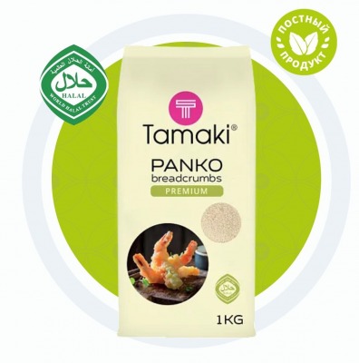 Сухари панко Tamaki крупнее и воздушнее обычных панировочных сухарей. Креветки с журнальных обложек получаются не с помощью фотошопа, а с применением сухарей панко Tamaki. "После жарки во фритюре мясо, креветки, рыба или овощи приобретают золотистую корочку, становятся «пушистыми» и приятно хрустят." Золотое сечение - так можно сказать о фракции этих сухарей. А их золотистый цвет скажет сам за себя. Продукт сертифицирован на соответствие стандарту GSO 2055 (Халяль). Подчеркивает вкус блюд в панировке, делает вкус более ярким и сочным. Цвет: С тёплым кремовым оттенком. В готовом виде - яркий золотистый. Для чего применяется: Идеальны для обжарки роллов, креветок, курицы и приготовления блюд: свинины-тонкацу, котлет по-киевски, наггетсов Консистенция: Крупная, фактурная крошка со специально подобранной идеальной фракцией 4 мм, из-за чего сухари не впитывают жир и не царапают нёбо. Для заявки Вы всегда можете обратиться к нашим менеджерам: 8-800-222-79-70 А так же сделать заявку самостоятельно в нашем интернет-магазине