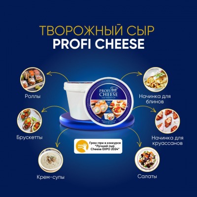Изготовлен на основе натурального творога и имеет выраженный нежно-сливочный вкус. Пластичная структура хорошо держит форму при приготовлении роллов и других холодных блюд.